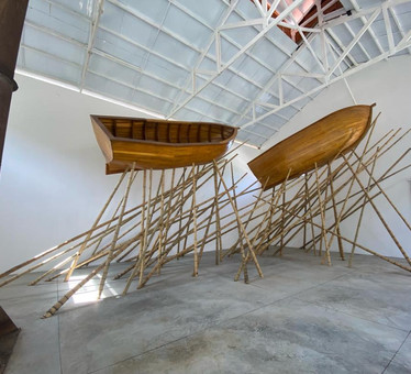 A obra, feita com barcos e bambus de dimensões variadas, está relacionada à sonoridade do mar. A proposta de Spaniol é enfraquecer as relações espaciais para que, a partir delas, o observador construa novas verticalidades e perspectivas. A sonoridade presente na instalação conecta o barco ao mar, mesmo na ausência de água, fazendo-o navegar com instabilidade e integrando-se ao espaço.